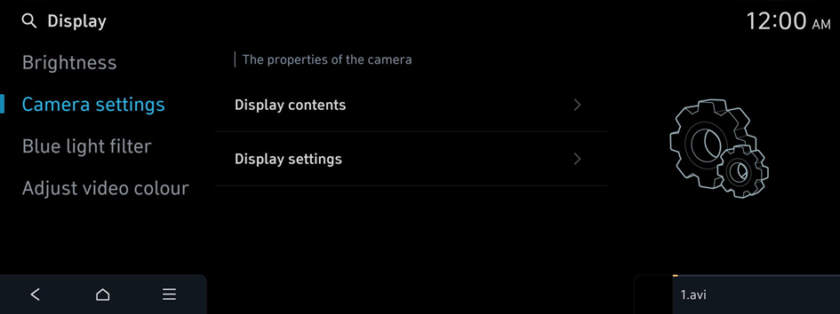 Change the system display settings such as display brightness and video aspect ratio.