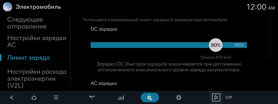 Установите максимальный лимит зарядки % аккумулятора автомобиля.