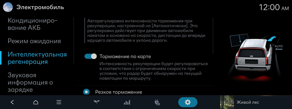 Авторегулировка интенсивности торможения при рекуперации, настроенной на [Автоматически]. Эта регулировка действует при движении автомобиля накатом и основана на скорости, дистанции до впереди идущего автомобиля и уклона дороги.