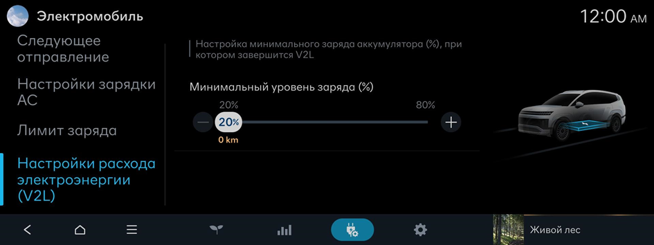 Настройка минимального заряда аккумулятора (%), при котором завершится V2L