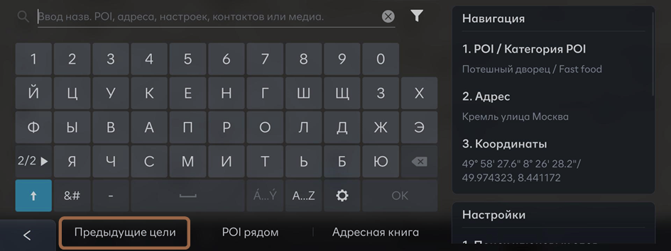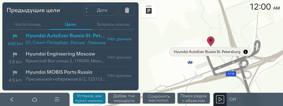 Можно задать пункт назначения или промежуточную точку, выбрав их из последних результатов поиска.