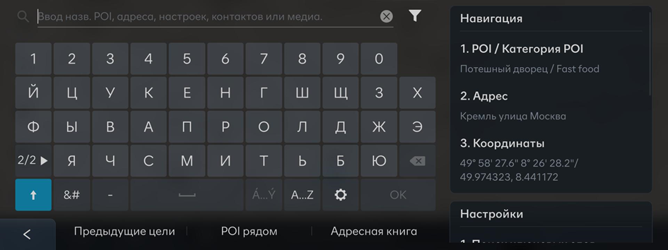 Используйте функцию поиска, чтобы легко задать пункт назначения в навигационной системе.