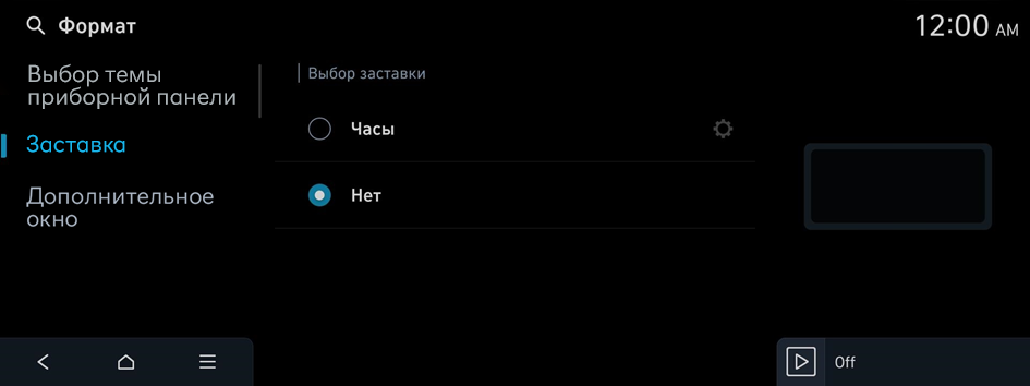 , чтобы на экране отображались часы.Системная заставка отсутствует.
