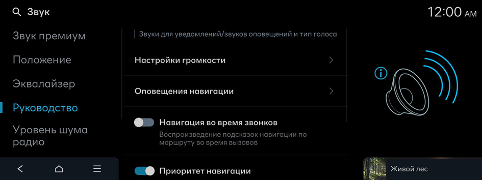 Уменьшает громкость всех звуков при включении подсказок навигации. Эта функция может не работать для медиа проекции телефона.
