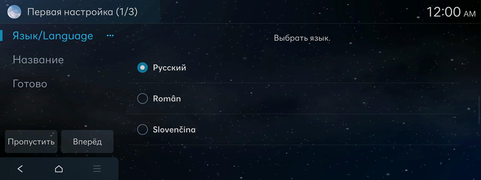 - Для использования настроек по умолчанию без изменения языка интерфейса нажмите Пропустить.