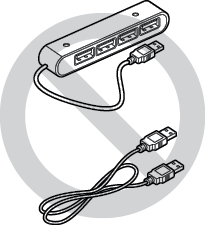 A USB hub or extension cable is used.