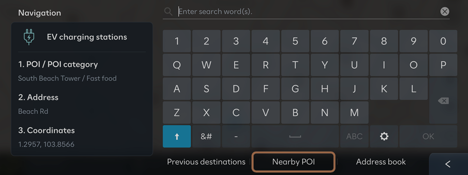 You can set a destination by searching for nearby points of interest by category.