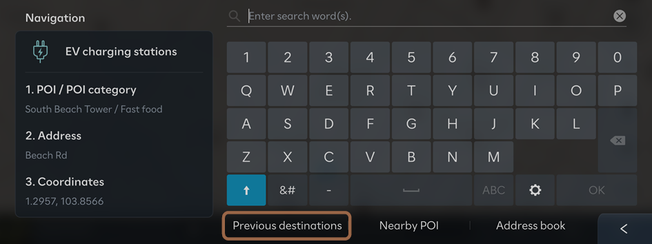 - On the Search screen, press Previous destinations.
