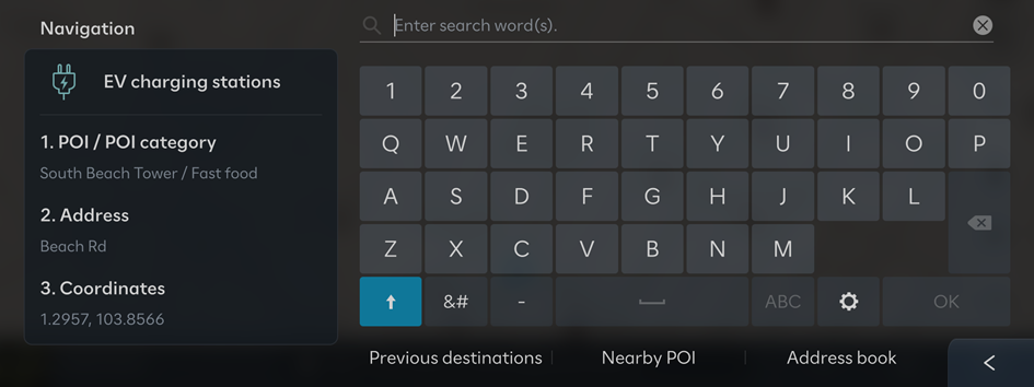 Use the search function to easily set a destination for navigation.