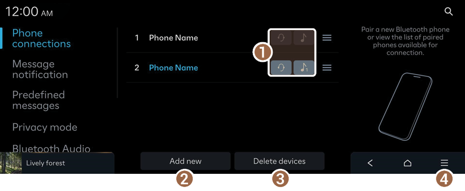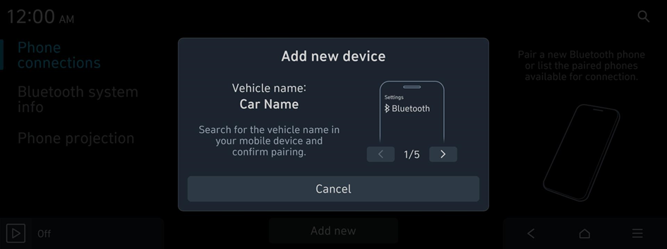 2. Turn on Bluetooth on the Bluetooth device to connect and select the vehicle system from the list of searched devices.
