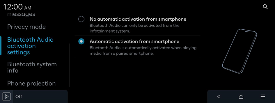 Starts playing Bluetooth Audio when playing media on your phone. You can also play Bluetooth Audio only in the vehicle.