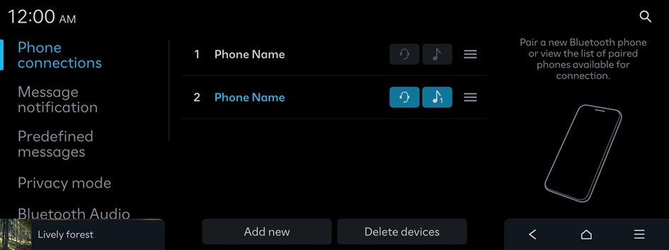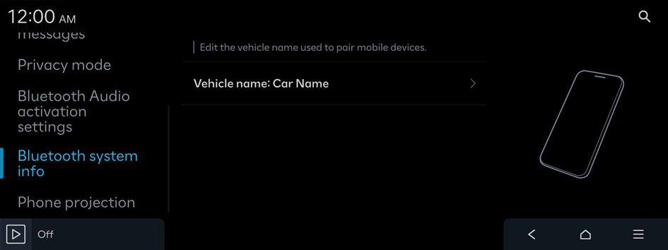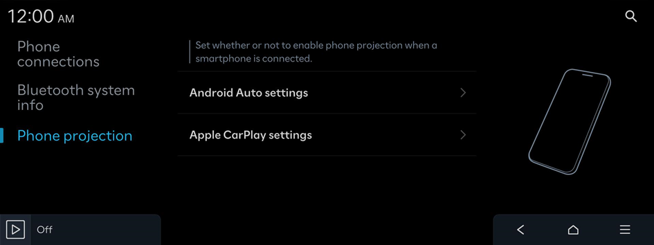 Manage Bluetooth devices or configure their operation settings. You can also activate the phone projection so that you can control the smartphone App from the system screen after connecting the smartphone to the system.
