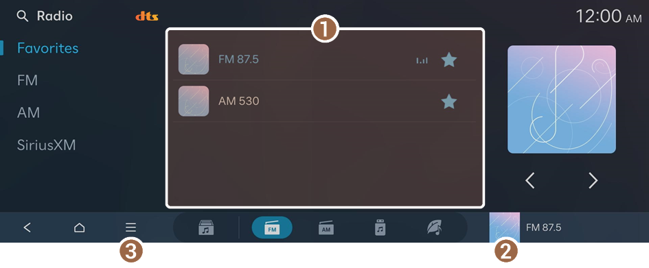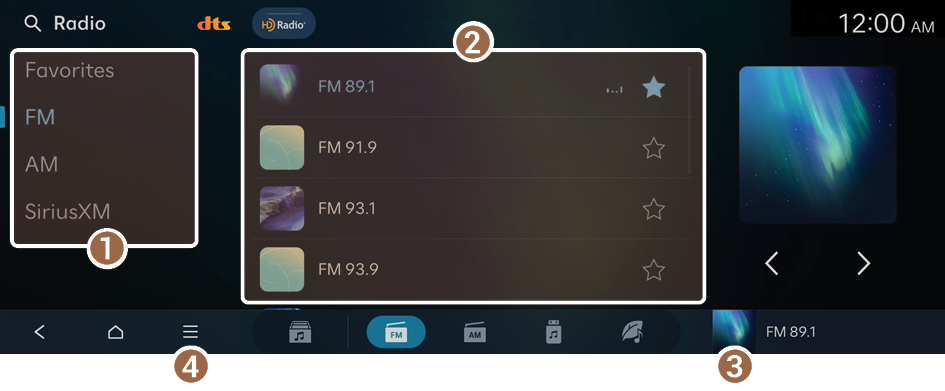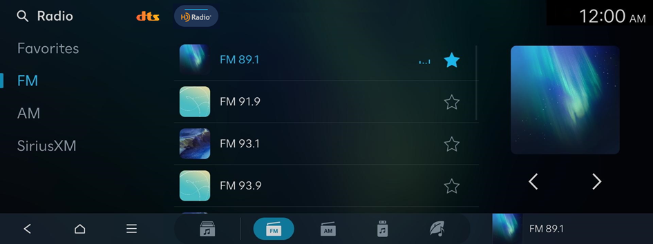 . - • You can save all stations, accessible from the FM screen, to the favorites list. On the FM screen, press