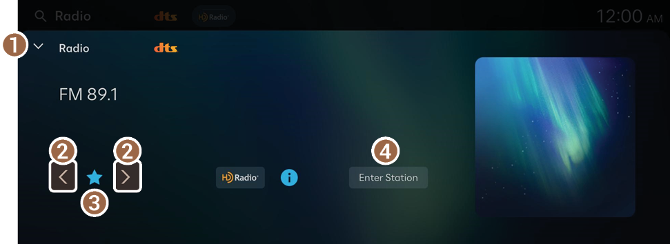 - • Enter Station: Can select or directly enter the desired radio frequency.