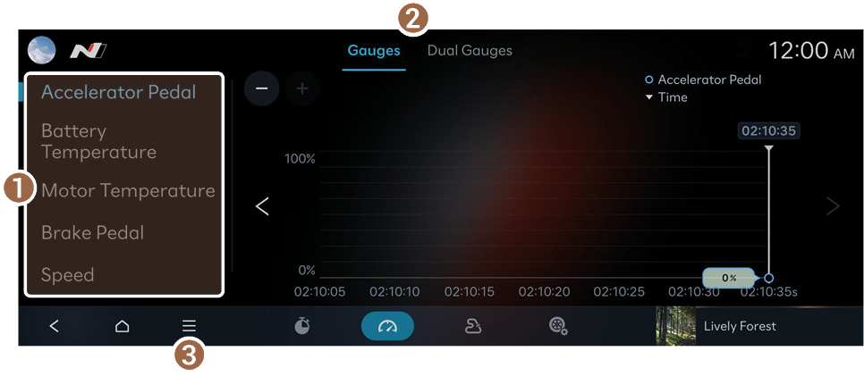 - • Accelerator Pedal: Displays the throttle gauge in real time.