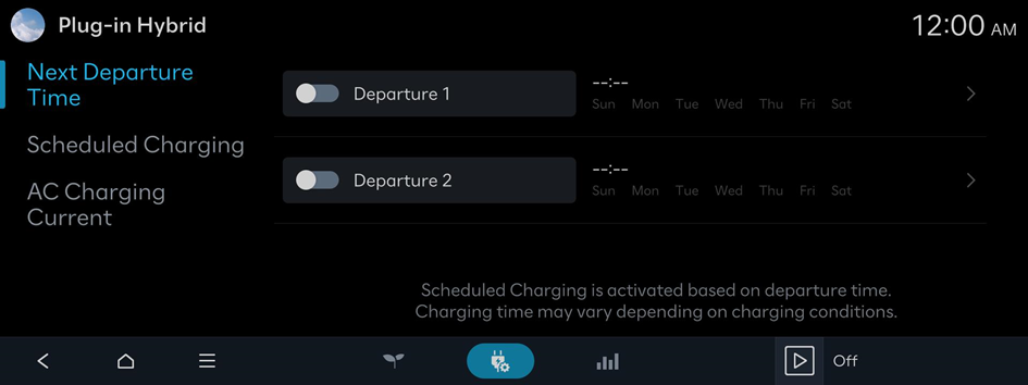 You can configure various charging settings, such as automatic battery charging at the specified departure time.
