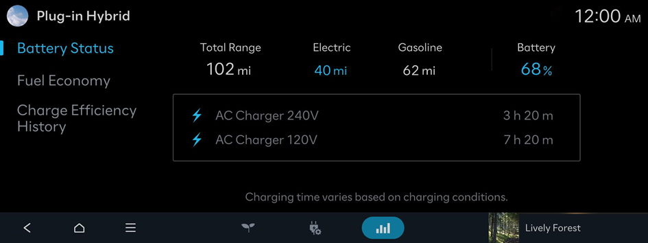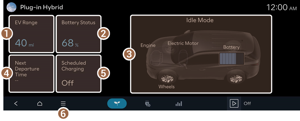 The Plug-in Hybrid screen provides the following features and information:
