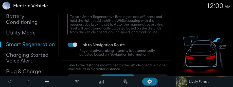 While coasting with the regenerative braking set to Auto, the regenerative braking level will be automatically adjusted based on the distance from the vehicle ahead, driving speed, and road incline.