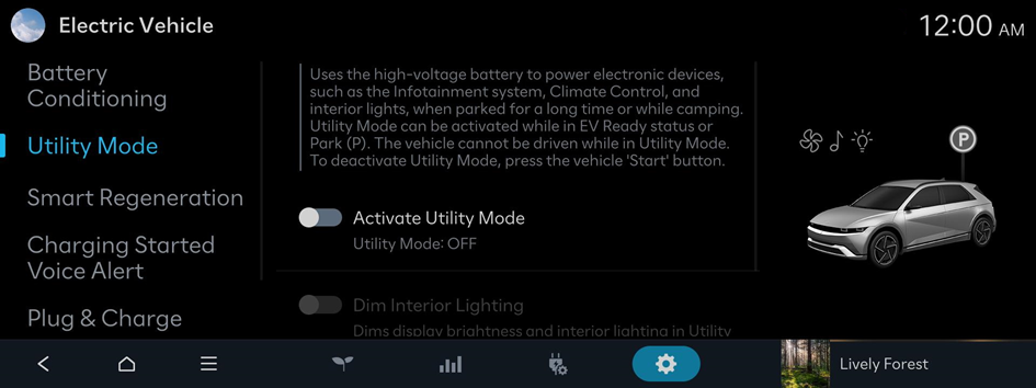 You can set convenience features available for electric vehicles.