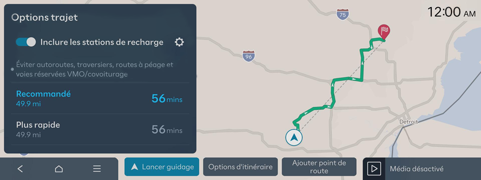 - L'heure d'arrivée et le temps restant jusqu'à la destination sont calculés en fonction des conditions de circulation. Selon leur évolution, ces estimations peuvent varier.