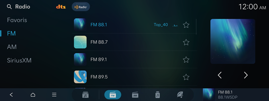 - Sur l'écran d'accueil multimédia, appuyez sur FM.