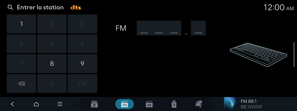 ▶ Entrer la station. - Saisissez une fréquence radio et appuyez sur OK.