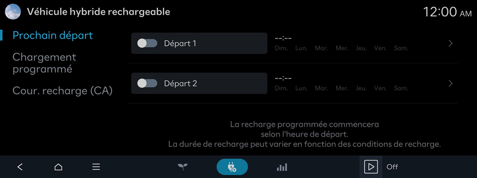 Vous pouvez programmer la recharge en fonction de l'heure de départ.