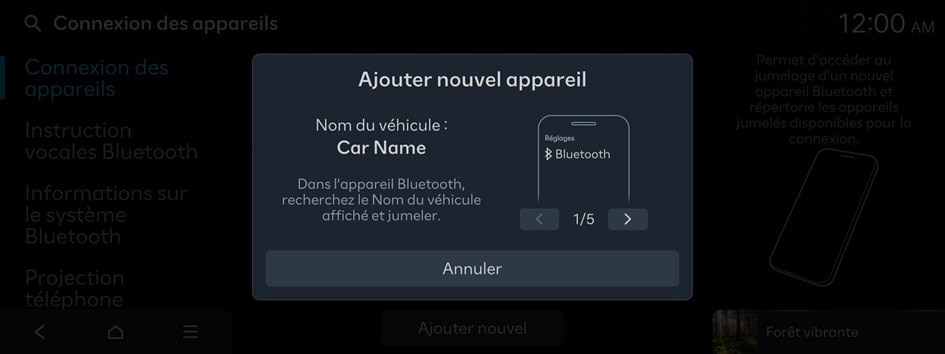 Écran de connexion Bluetooth