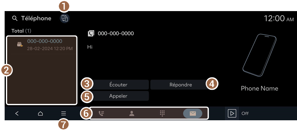 en bas de l'écran Téléphone. - Sélectionnez un message dans la liste.
