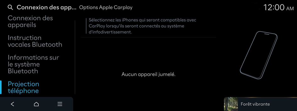 - Une fois l'iPhone connecté, Apple CarPlay s'affiche sur l'écran d'accueil à la place de Projection téléphone. Si Apple CarPlay n'apparaît pas, réessayez de connecter les deux systèmes.