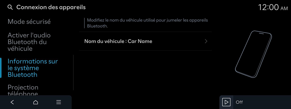 Modifiez le nom du véhicule pour jumeler les appareils Bluetooth.