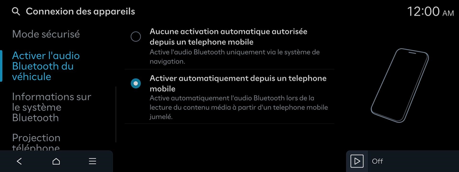 Active automatiquement l'audio Bluetooth lors de la lecture du contenu média à partir d'un telephone mobile jumelé.