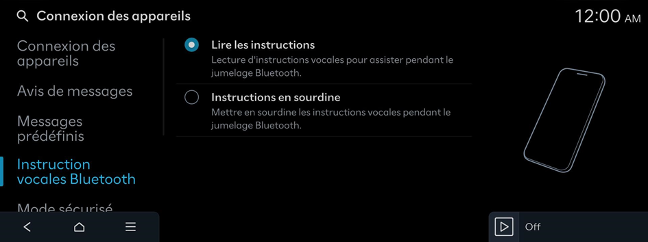Lecture d'instructions vocales pendant le jumelage Bluetooth.