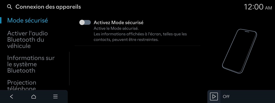 Active le Mode sécurisé. Les informations affichées à l'écran, telles que les contacts, peuvent être restreintes.