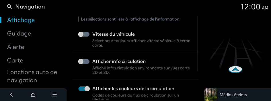Sélect pour toujours afficher vitesse véhicule à écran carte.