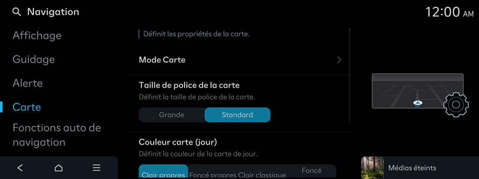 Vous pouvez configurer les opérations de navigation, l'affichage à l'écran, le guidage vocal et d'autres réglages.