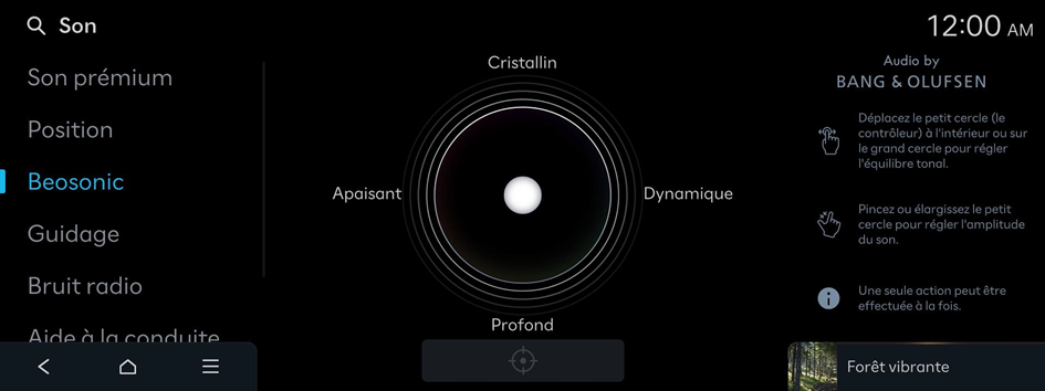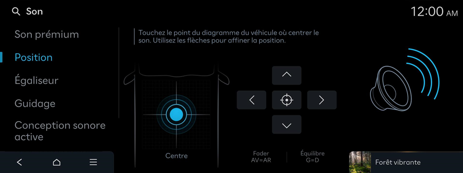 Touchez le point du diagramme du véhicule où centrer le son. Utilisez les flèches pour affiner la position.