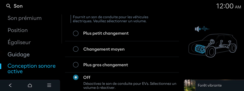 Fournit un son de conduite pour les véhicules électriques. Veuillez sélectionner un volume.