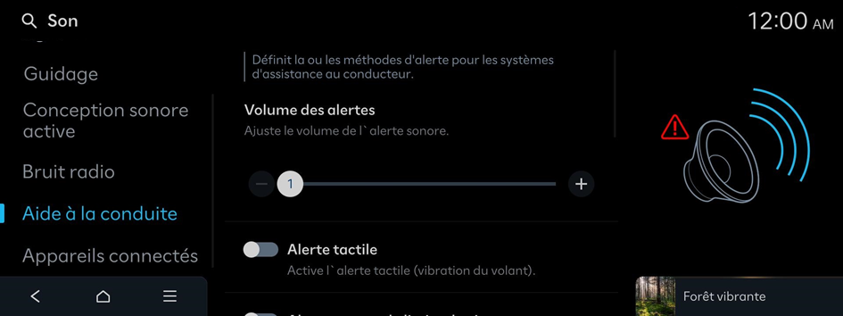 Réduit tous les autres volumes audio lorsqu'un système de sécurité de conduite émet un avertissement sonore.