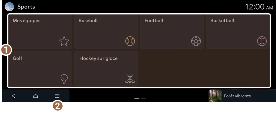 - Sur l'écran d'accueil, appuyez sur Sports.
