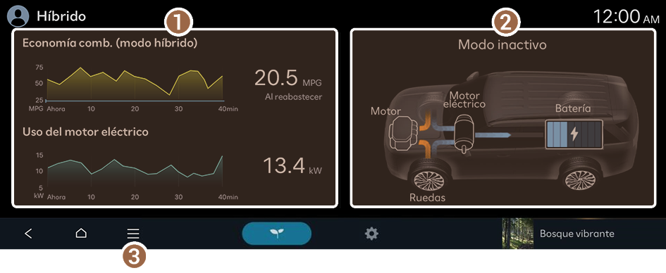 Puede ver la economía de combustible y los flujos de energía del vehículo.