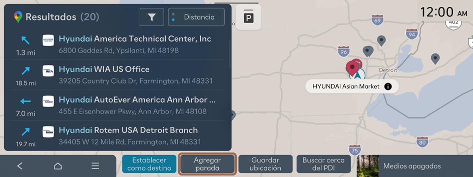 - En la pantalla de resultados de búsqueda, presione Agregar parada.