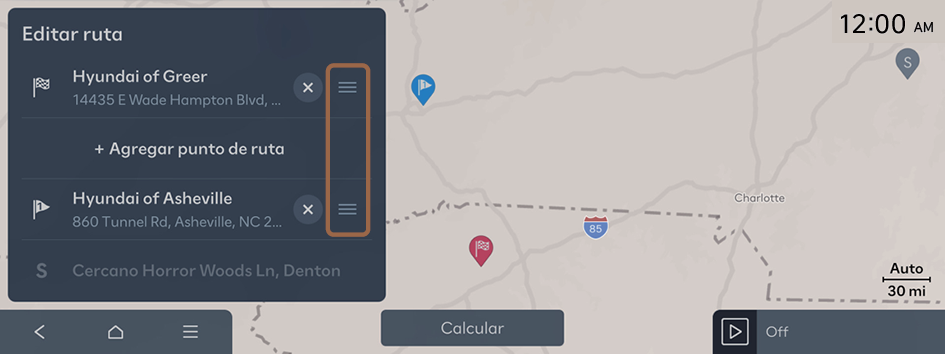 al lado del destino y, luego, arrástrelo hasta la posición que desea. - Una vez que edite la ruta, presione Calcular.