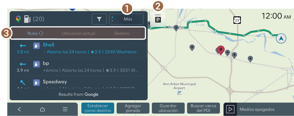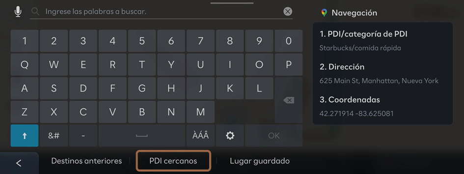 ▶ Inform. cercana ▶ PDI cercanos en la pantalla del mapa.