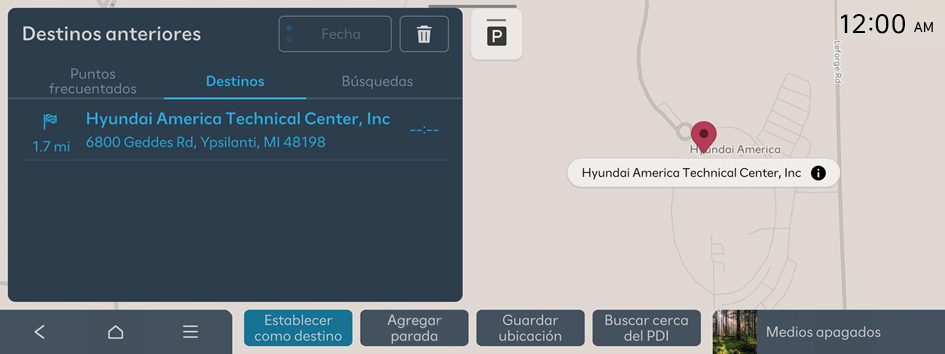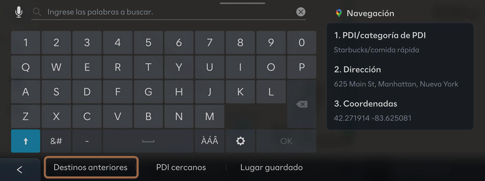 Puede seleccionar entre los resultados de búsqueda recientes para establecer un destino o punto de ruta.