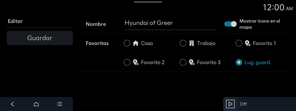 ▶ Guardar ubicación. - Establezca los detalles del lugar para registrarlo y presione Guardar.