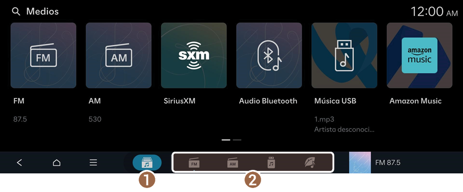- Muestra la pantalla de inicio de medios.