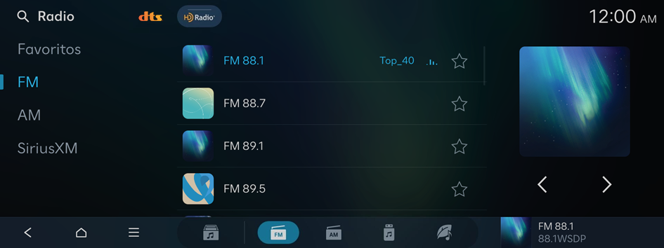- En la pantalla de inicio de medios, presione FM.