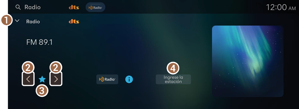 - • Ingrese la estación: Permite seleccionar o ingresar directamente la frecuencia de radio deseada.