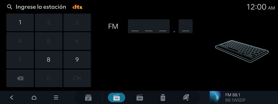 ▶ Ingrese la estación. - Ingrese una frecuencia de radio y presione OK.